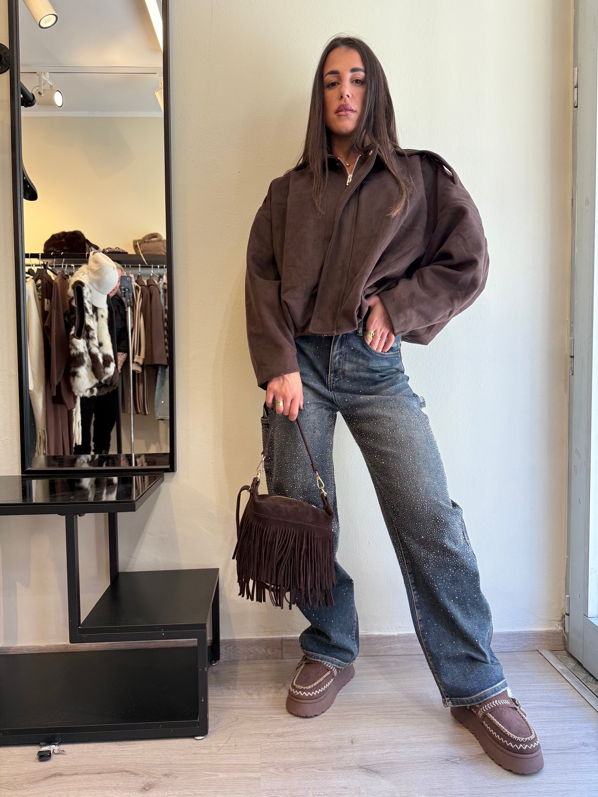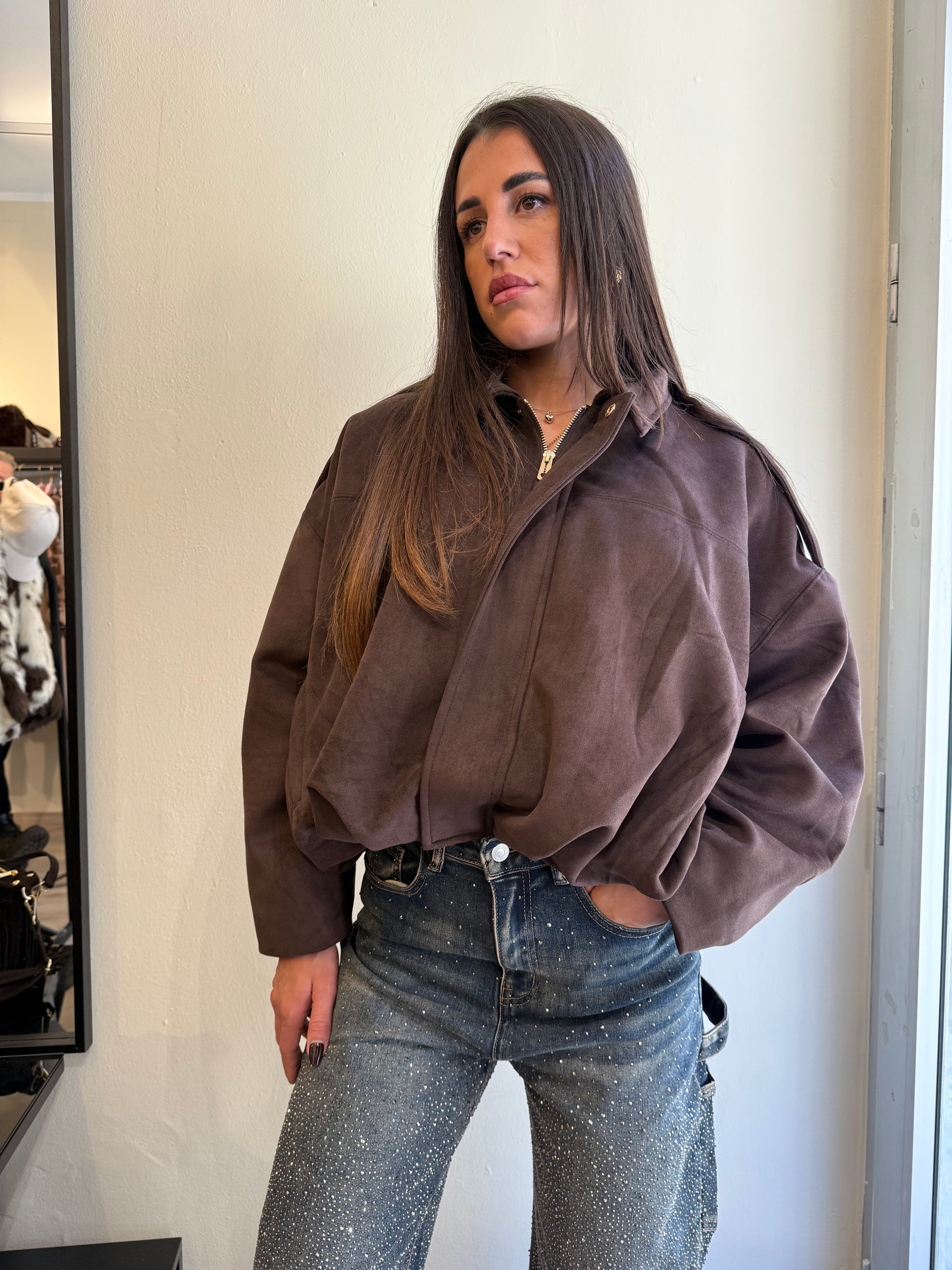 Bomber imbottito effetto camoscio. Taglia unica. Vestibilità xs-L